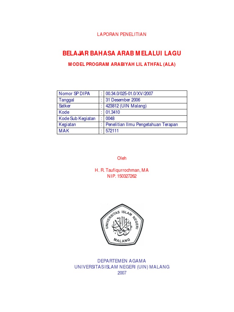 Belajar Bahasa Arab Melalui Lagu Model Program Arabiyah Lil Athfal Ala Pdf